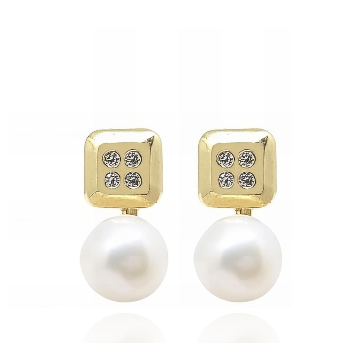 Pendientes Oro Amarillo de 18 quilates con perla y circonitas, 12mm y cierre catalán.