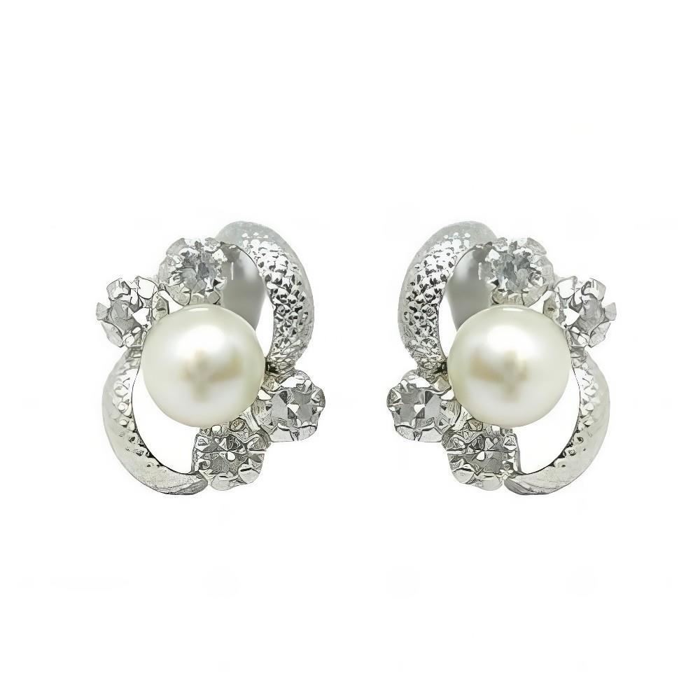 Pendientes Plata de Ley de flor con perla y circonitas, 10mm y cierre catalán.