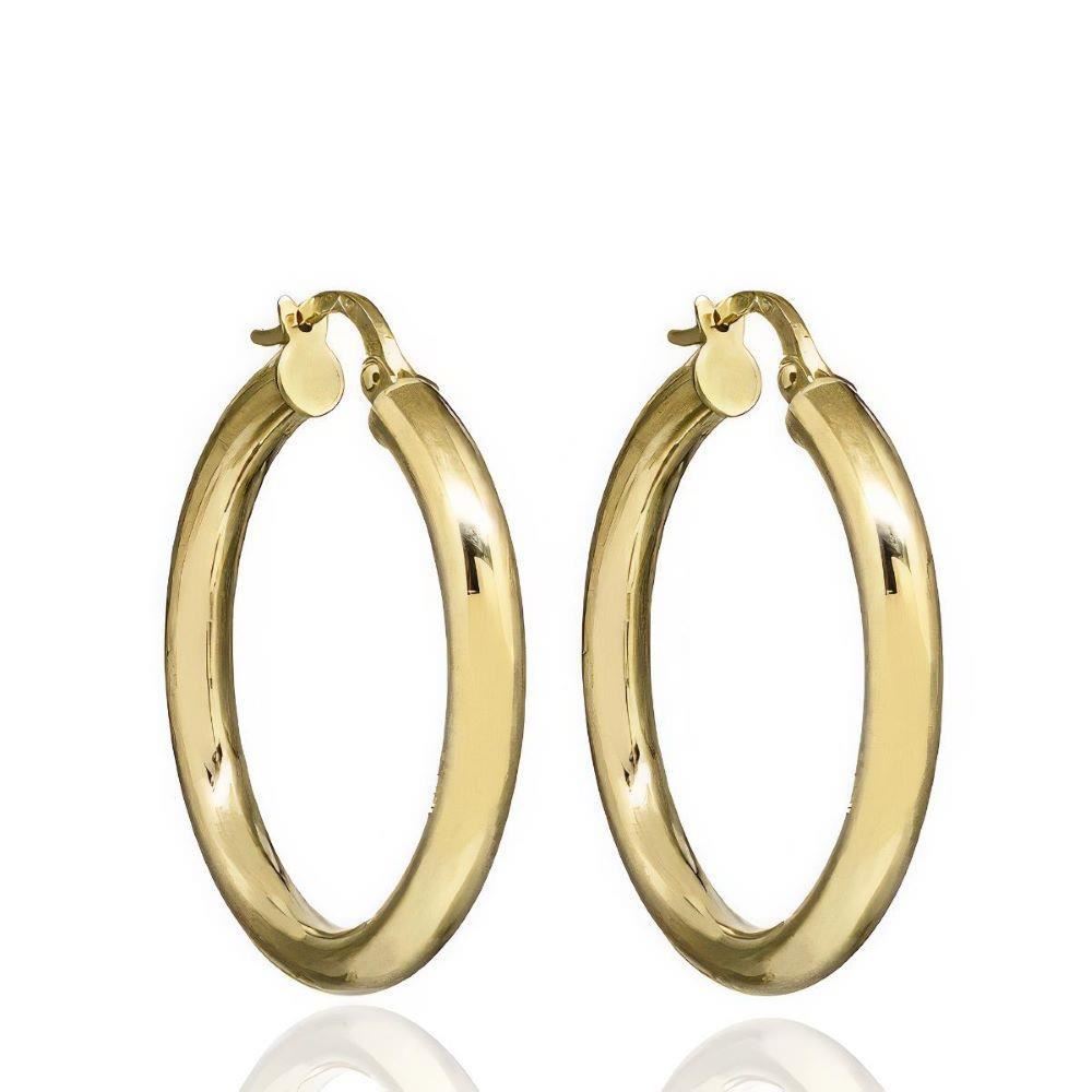Criollas Oro Amarillo de 18 quilates de tubo, grosor de 3mm y diámetro de 21mm.