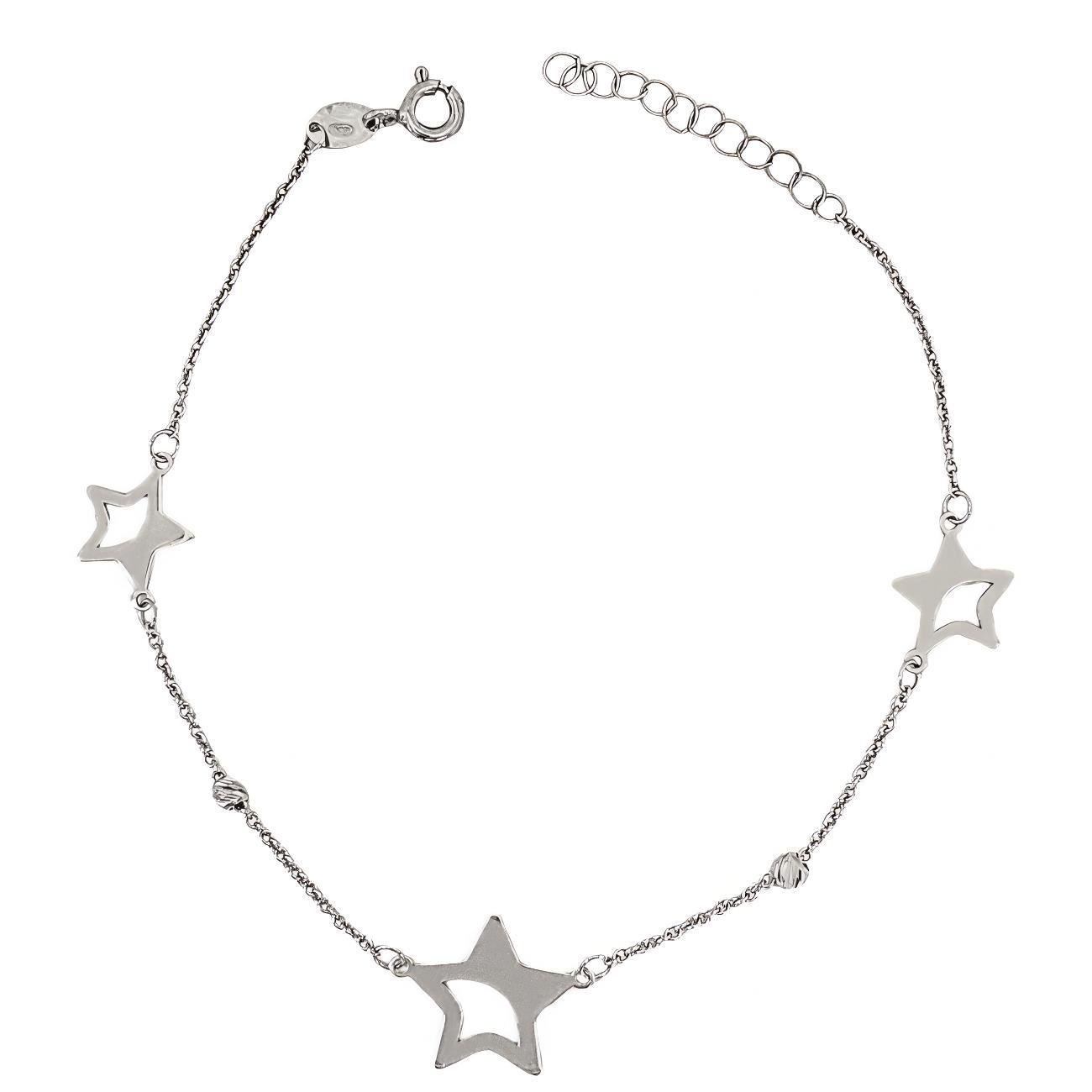 Pulsera Oro Blanco de 18 quilates con estrellas de 14 y 10mm, largo de 18cm, con alargador de 3cm.