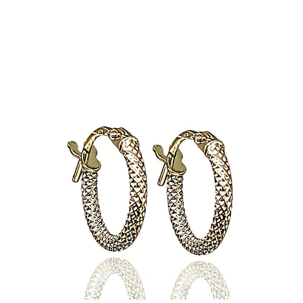 Criollas Oro Amarillo de 18 quilates de malla, grosor de 1.5mm y diámetro de 12mm, cierre de pala.