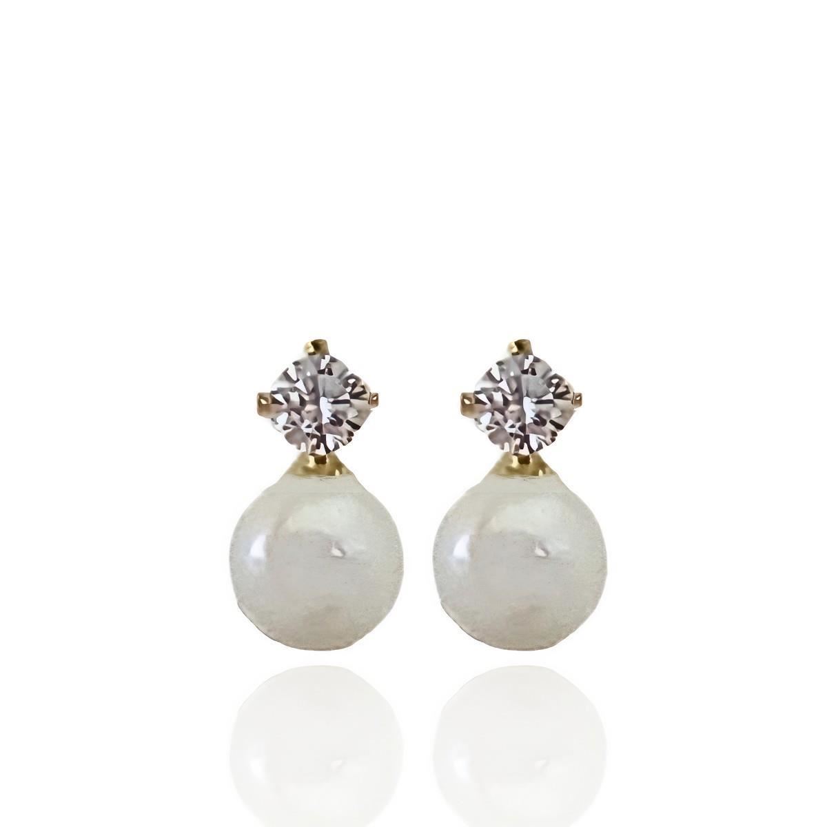 Pendientes Oro Amarillo de 18 quilates con perla y circonita, 8mm y cierre de rosca.