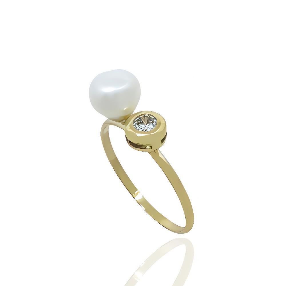 Sortija Oro Amarillo de 18 quilates con perla y circonita, 12mm y brazo liso.