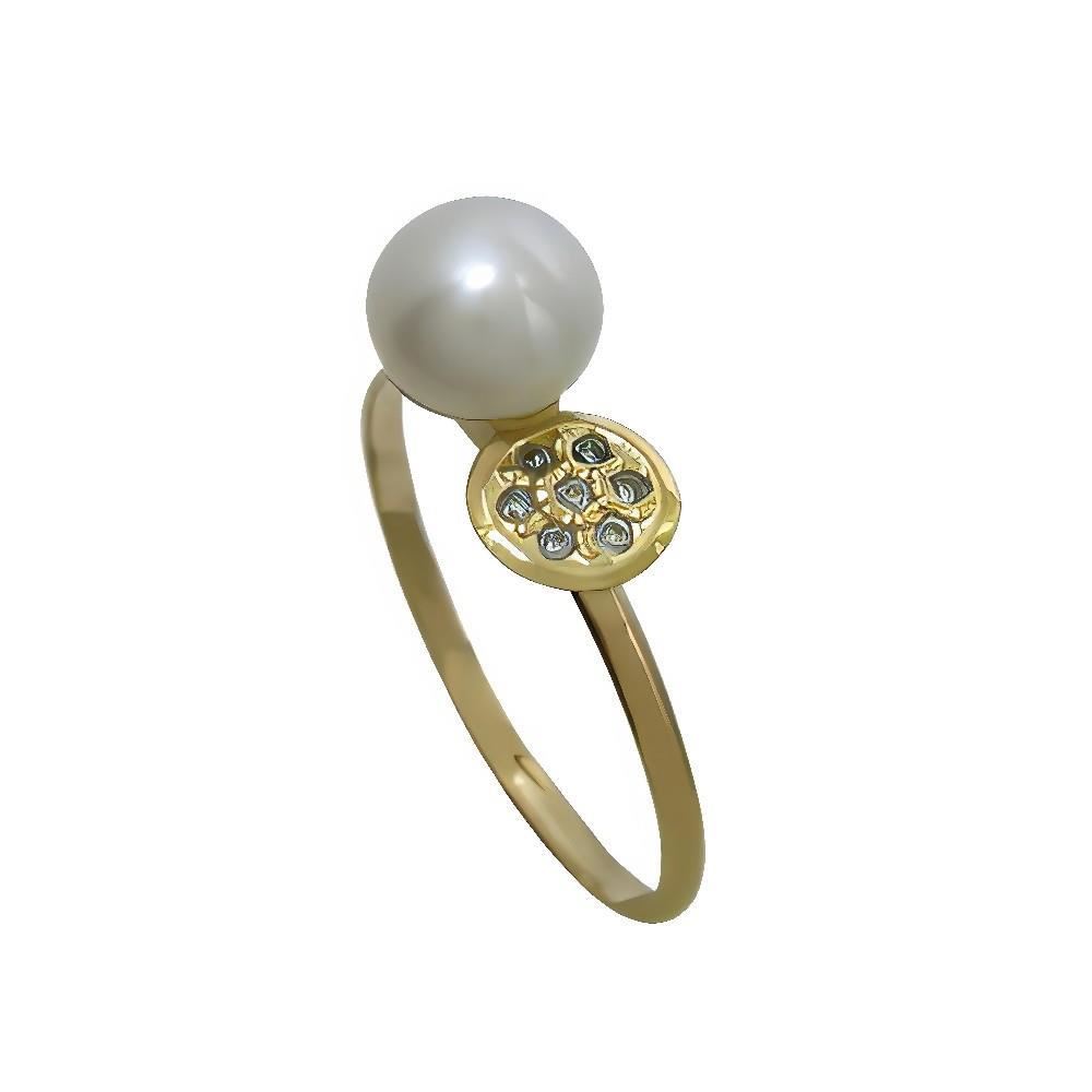 Sortija Oro Amarillo de 18 quilates con perla y circonitas, 12mm y brazo liso.