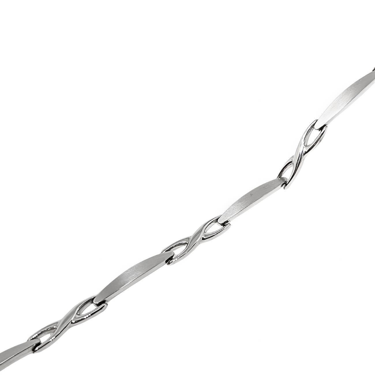 Pulsera Oro Blanco 18 quilates en mate y brillo, ancho de 3.5mm y largo de 18.5cm.