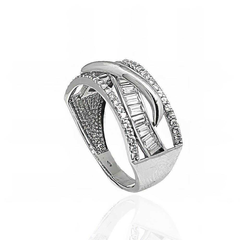 Sortija Oro Blanco de 18 quilates con circonitas, ancho de 9mm.