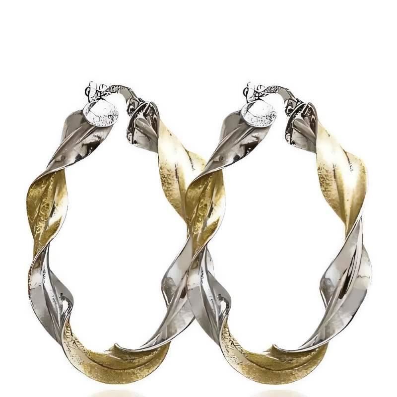 Criollas Oro Amarillo y Oro Blanco de 18 quilates retorcidas, grosor de 3mm y diámetro de 35mm.