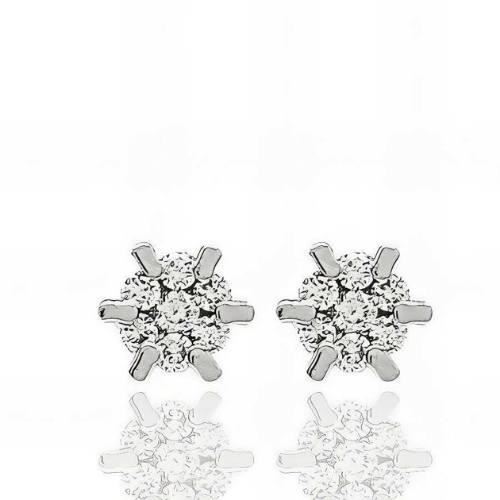 Pendientes Oro Blanco de 18 quilates con dos brillantes centrales de 0.21ktes y doce brillantes de 0.05ktes en total, 5mm y cierre de presión.