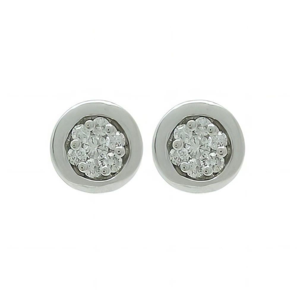 Pendientes Oro Blanco de 18 quilates coon brillantes, 0.199 ktes en total, 6.5mm y cierre de presión.