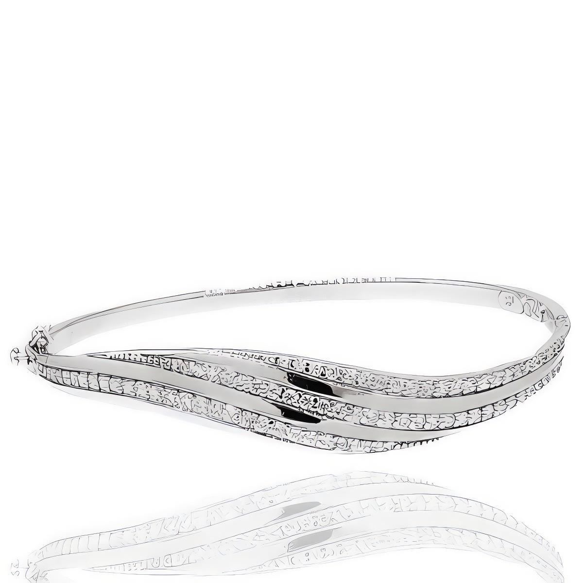 Caña Oro Blanco de 18 quilates con circonitas, 10mm de ancho y 60mm de diámetro, con doble cierre, de lengüeta y de ocho.