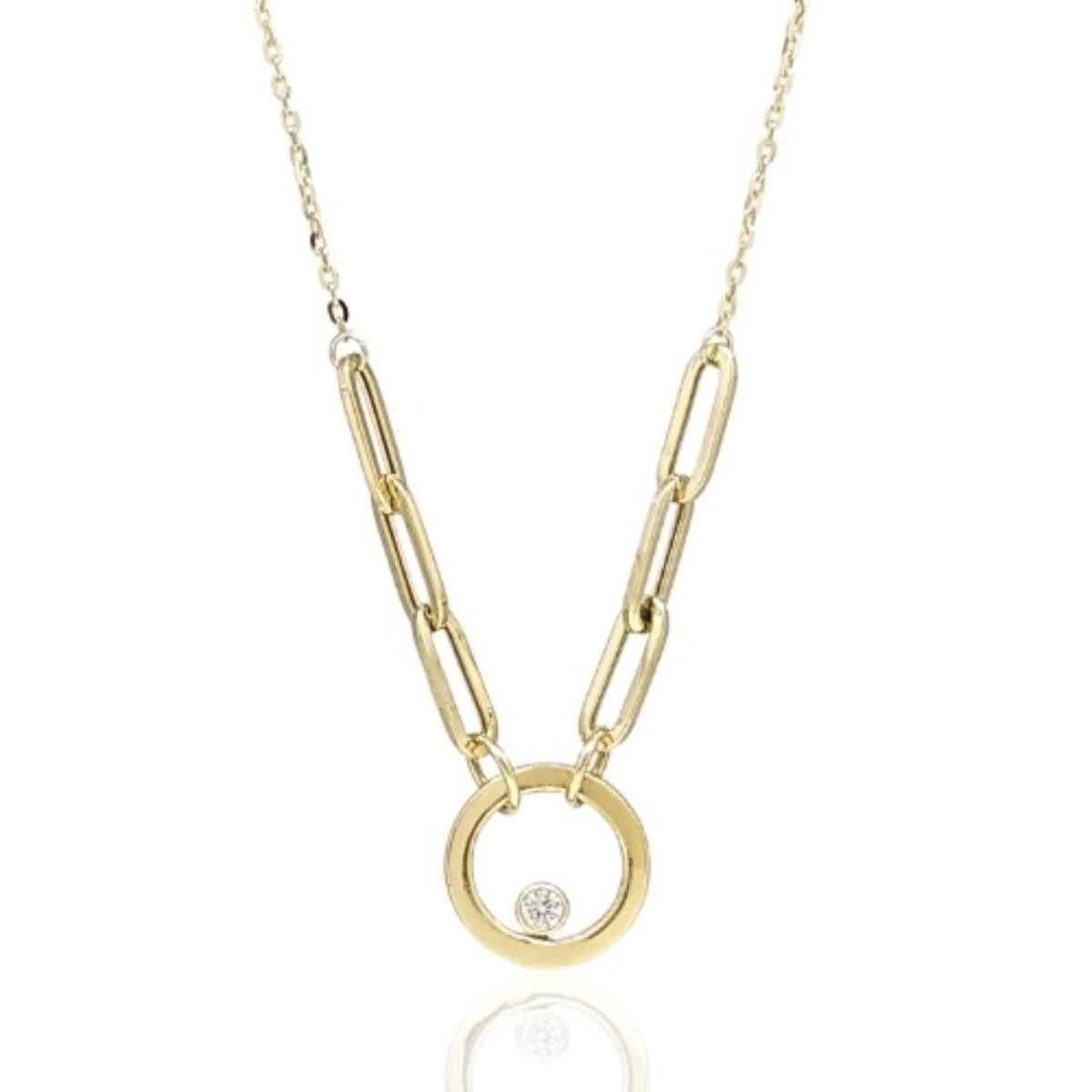 Gargantilla Oro Amarillo de 18 quilates con motivo de 12mm y circonita, largo de 45cm.