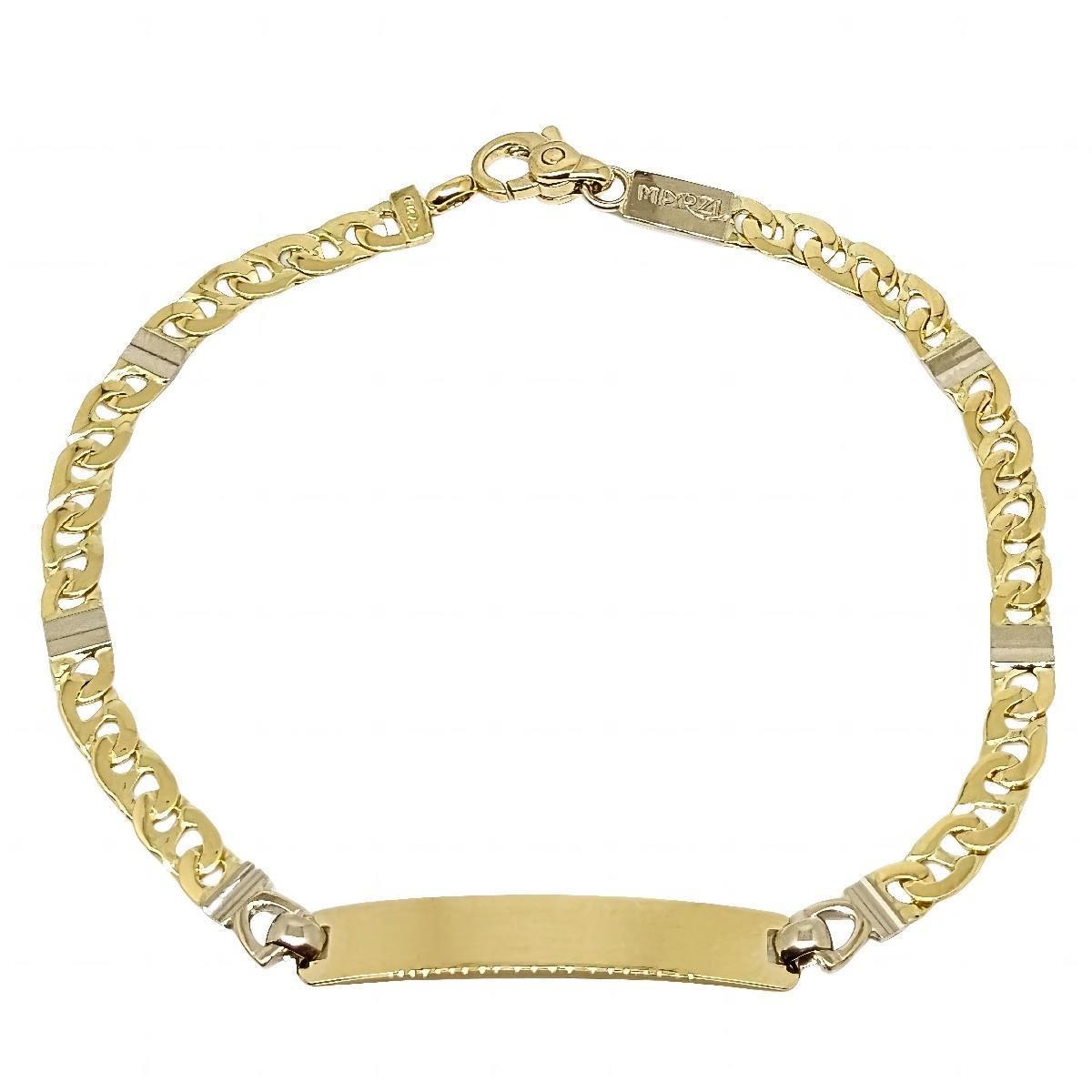 Pulsera Placa Oro Amarillo y Blanco de 18 quilates de eslabón de 8mm, placa de 8x30mm y largo de 19cm.