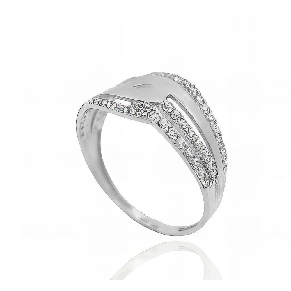 Sortija Oro Blanco de 18 quilates con circonitas, ancho de 10mm en disminución.