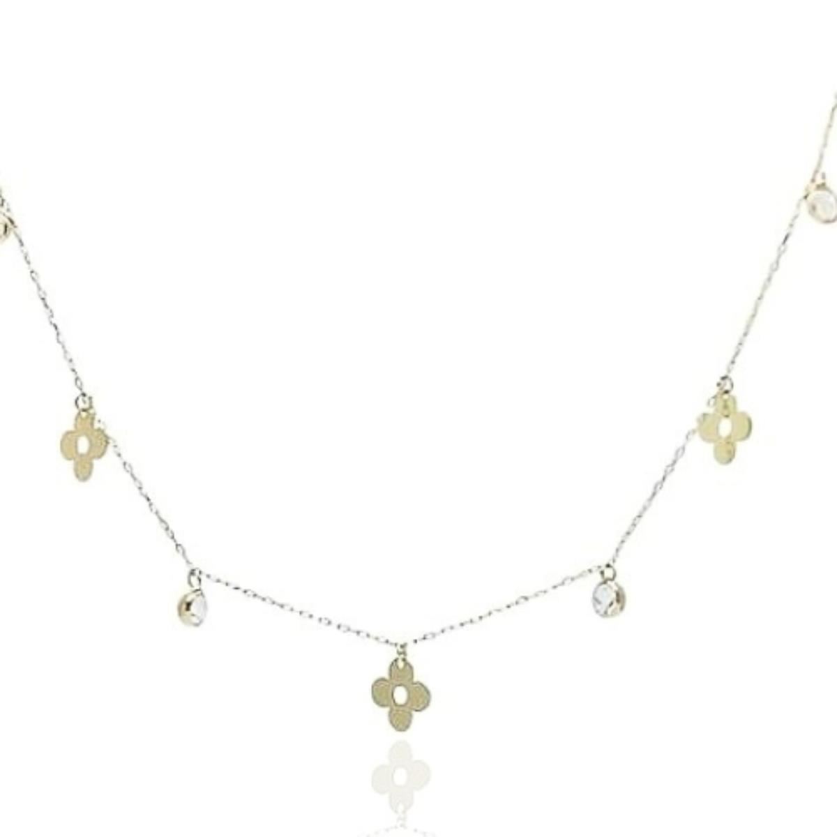 Gargantilla Oro Amarillo de 18 quilates con flores de 7mm y circonitas de 3mm, largo de 42cm.