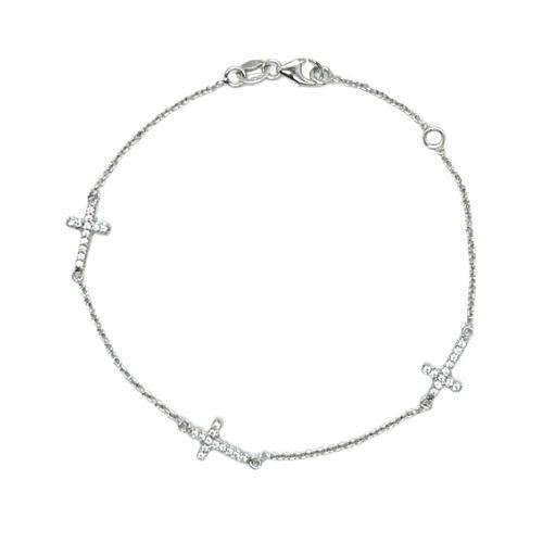 Pulsera Oro Blanco de 18 quilates con cruces con circonitas de 10mm, largo de 19cm con anilla a 2cm para ajustar a la media deseada.