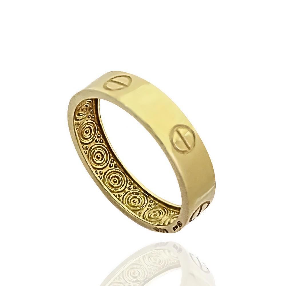 Sortija Oro Amarillo de 18 quilates con dibujo tornillos, 5mm de ancho.