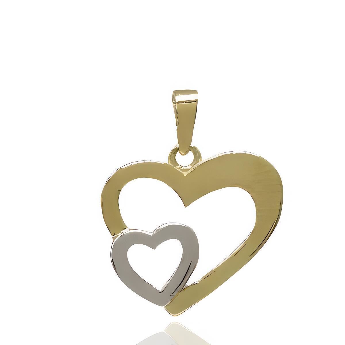 12-1015 - COLGANTE DOS CORAZONES BICOLOR 16MM 18K