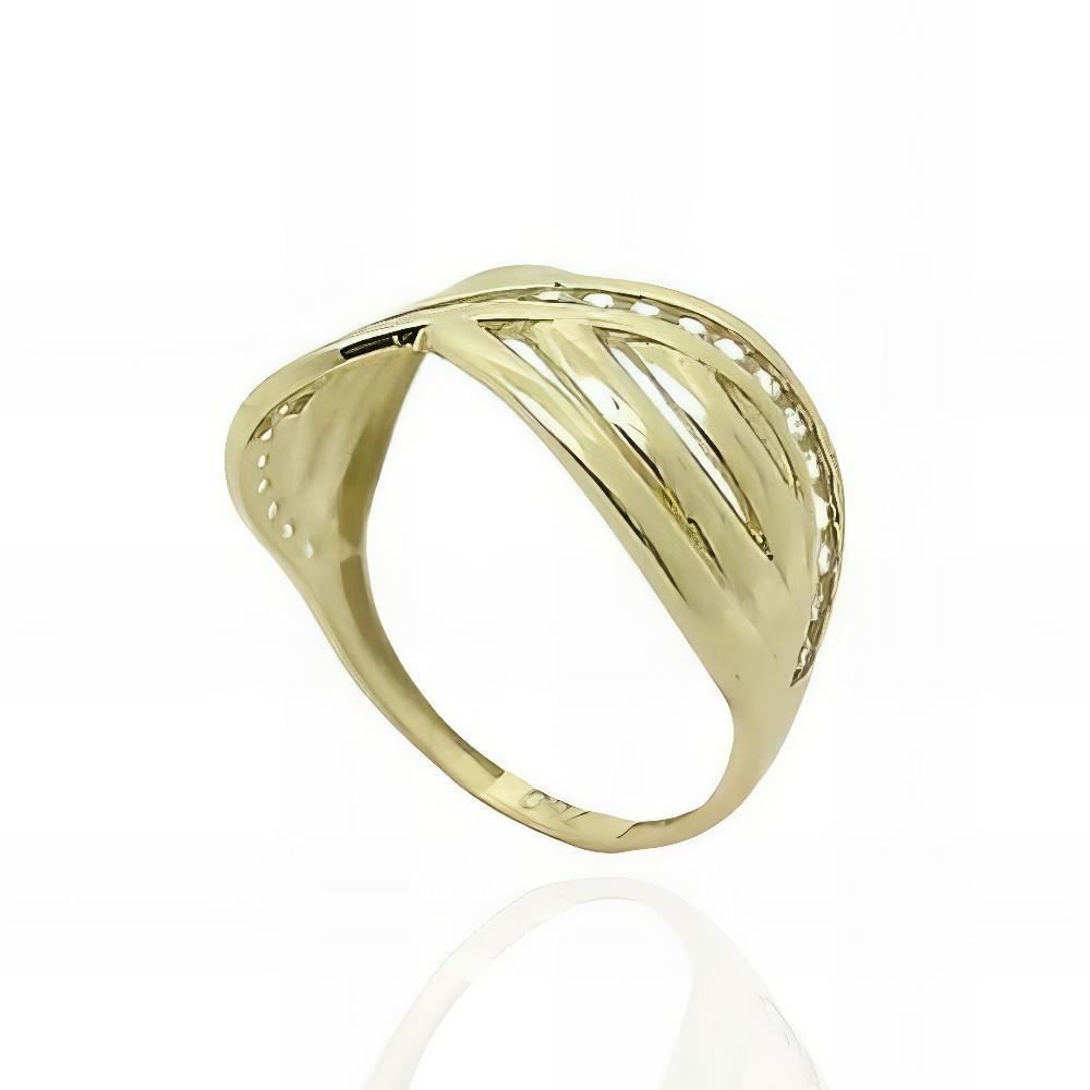 Sortija Oro Amarillo de 18 quilates calada con circonitas, 10mm de ancho en disminución.