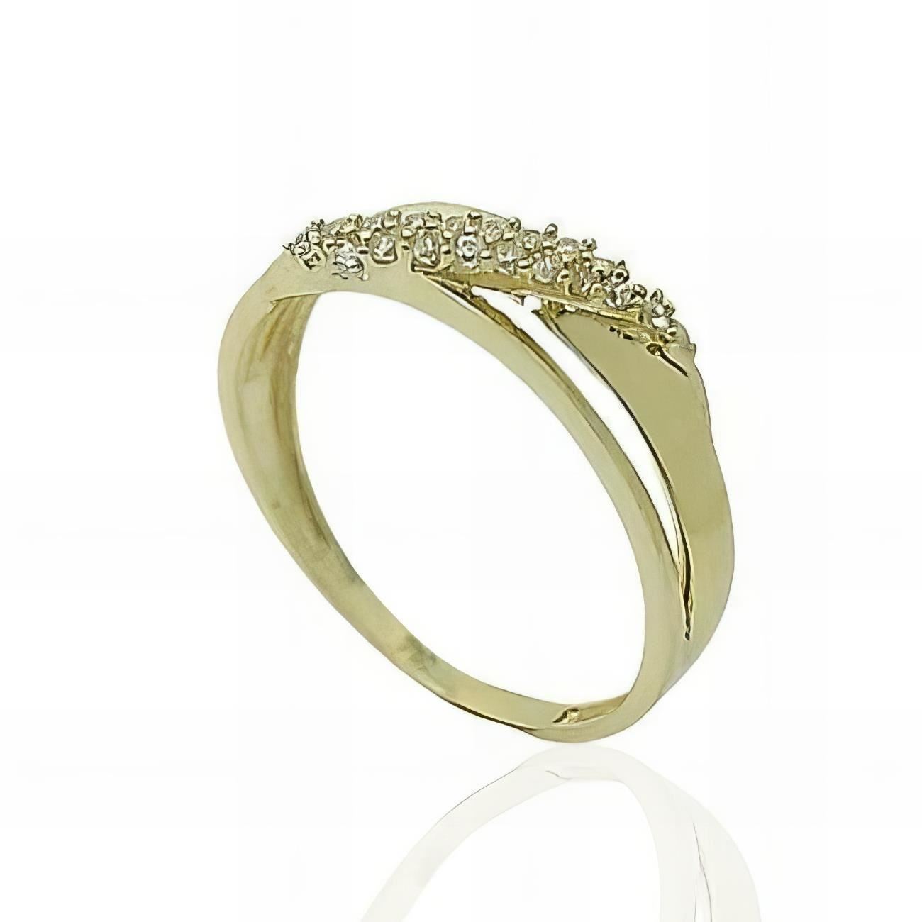 Sortija Oro Amarillo de 18 quilates con circonitas, 6mm de ancho en disminución.