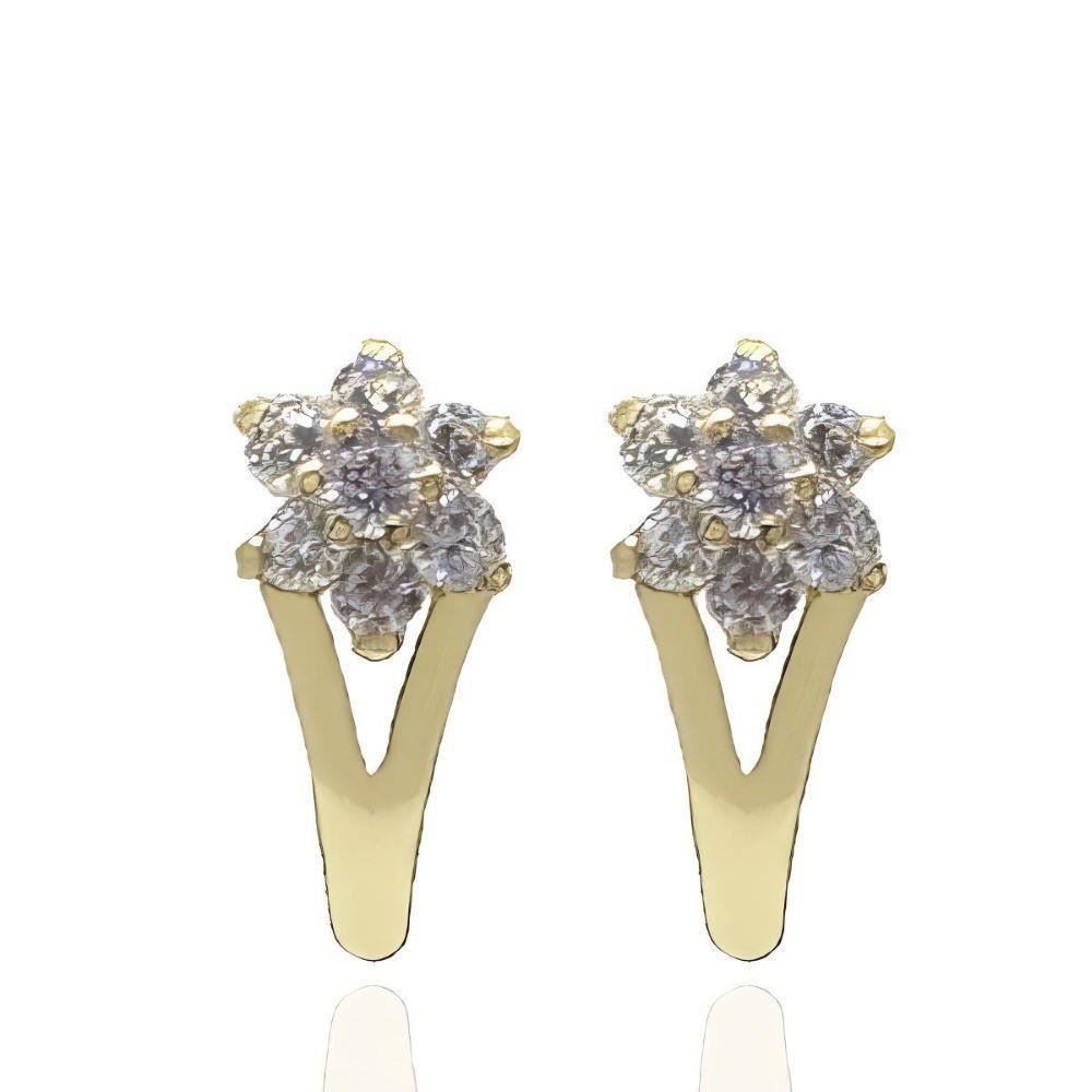 Pendientes Oro Amarillo de 18 quilates de rosetón con circonitas, 13mm y cierre catalán.
