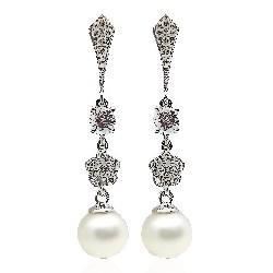 Pendientes Oro Blanco de 18 quilates de perlas y circonitas, 40mm y cierre de presión.
