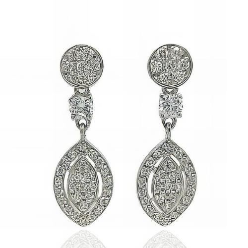 Pendientes Oro Blanco de 18 quilates con circonitas, largo 26mm y cierre de presión.