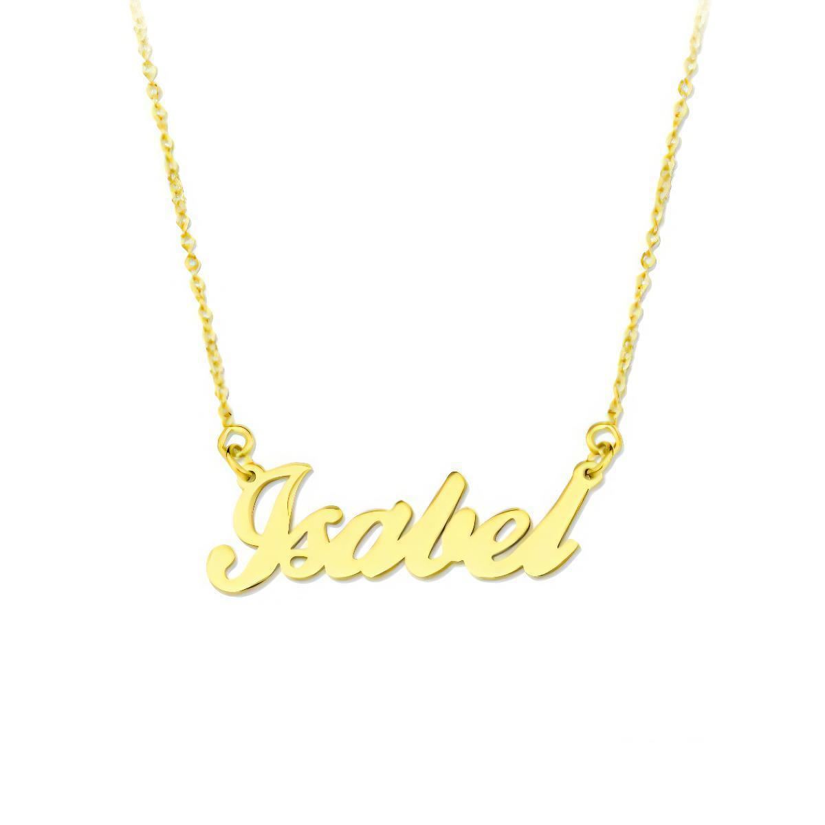Gargantilla de Plata de Ley dorada personalizada, cadena forzada de 40cm más alargador de 4cm. Máximo 10 caracteres.