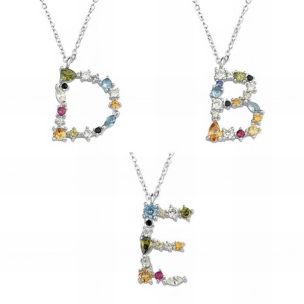 Gargantilla Plata de Ley de inicial con piedras de colores, 17mm sin contar asa y largo de 40cm con alargador de 4.5cm para ajustar a la medida deseada.