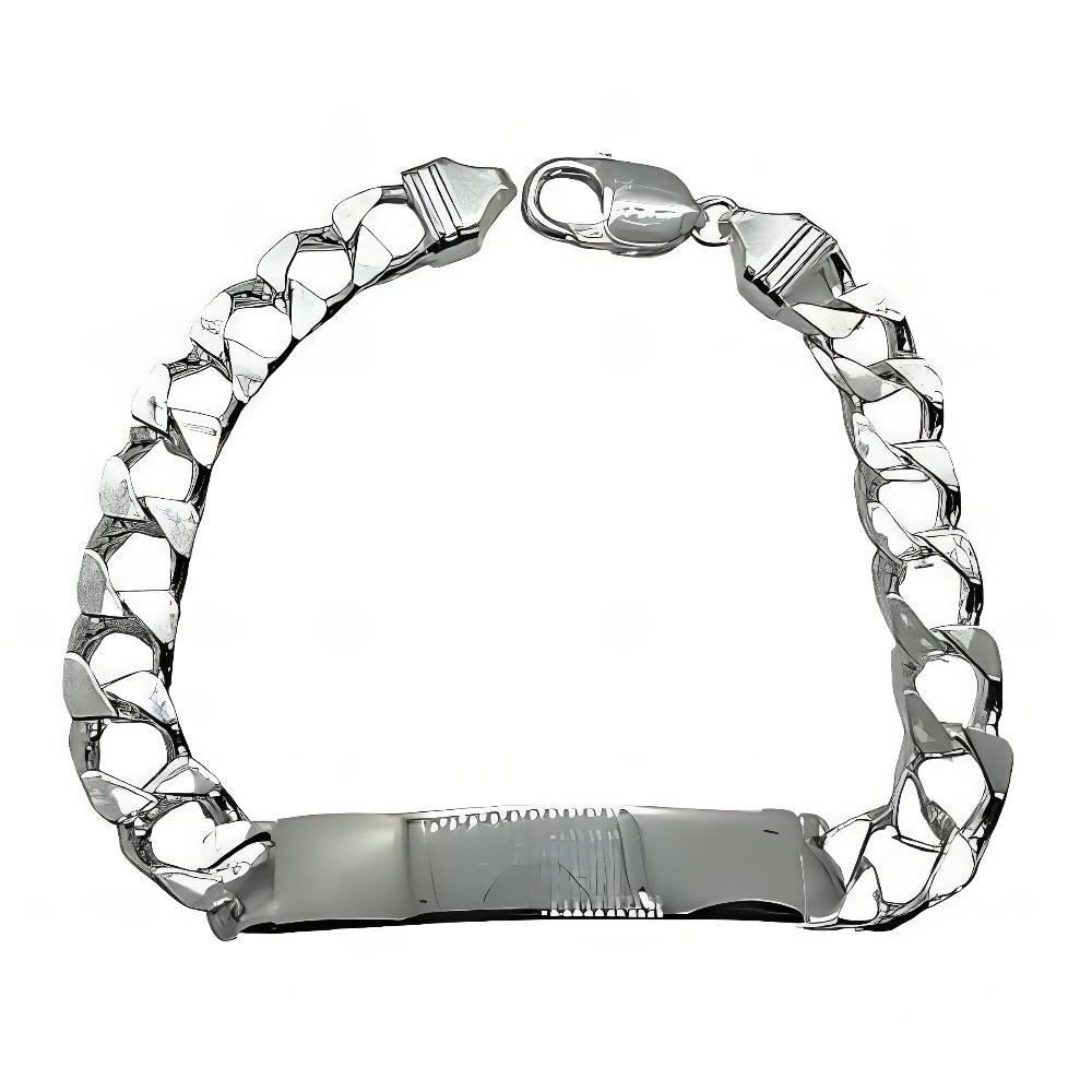 Pulsera Plata de Ley de eslabón barbado de 6mm y placa de 7x40mm, largo de 20.5cm.