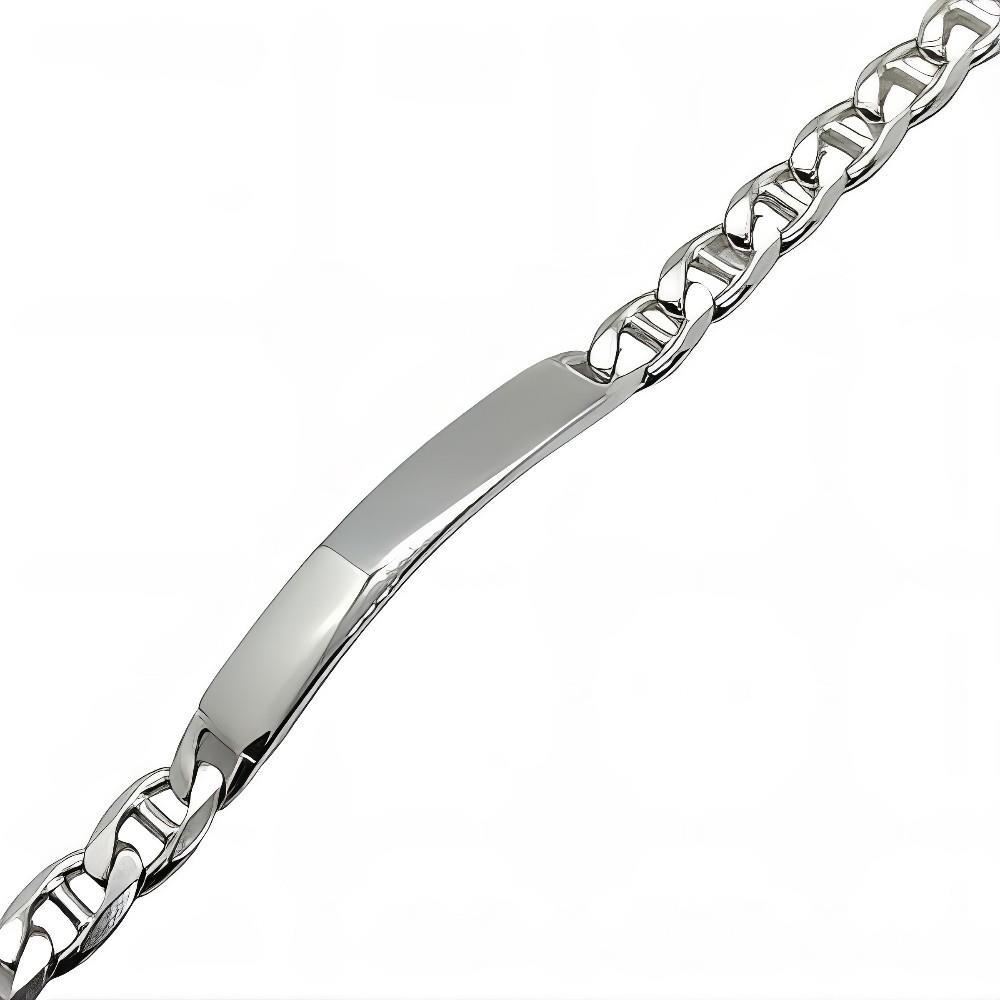Pulsera Plata de Ley de eslabón ancla de 7.4mm y placa de 7.7x40mm, largo de 21.5cm.
