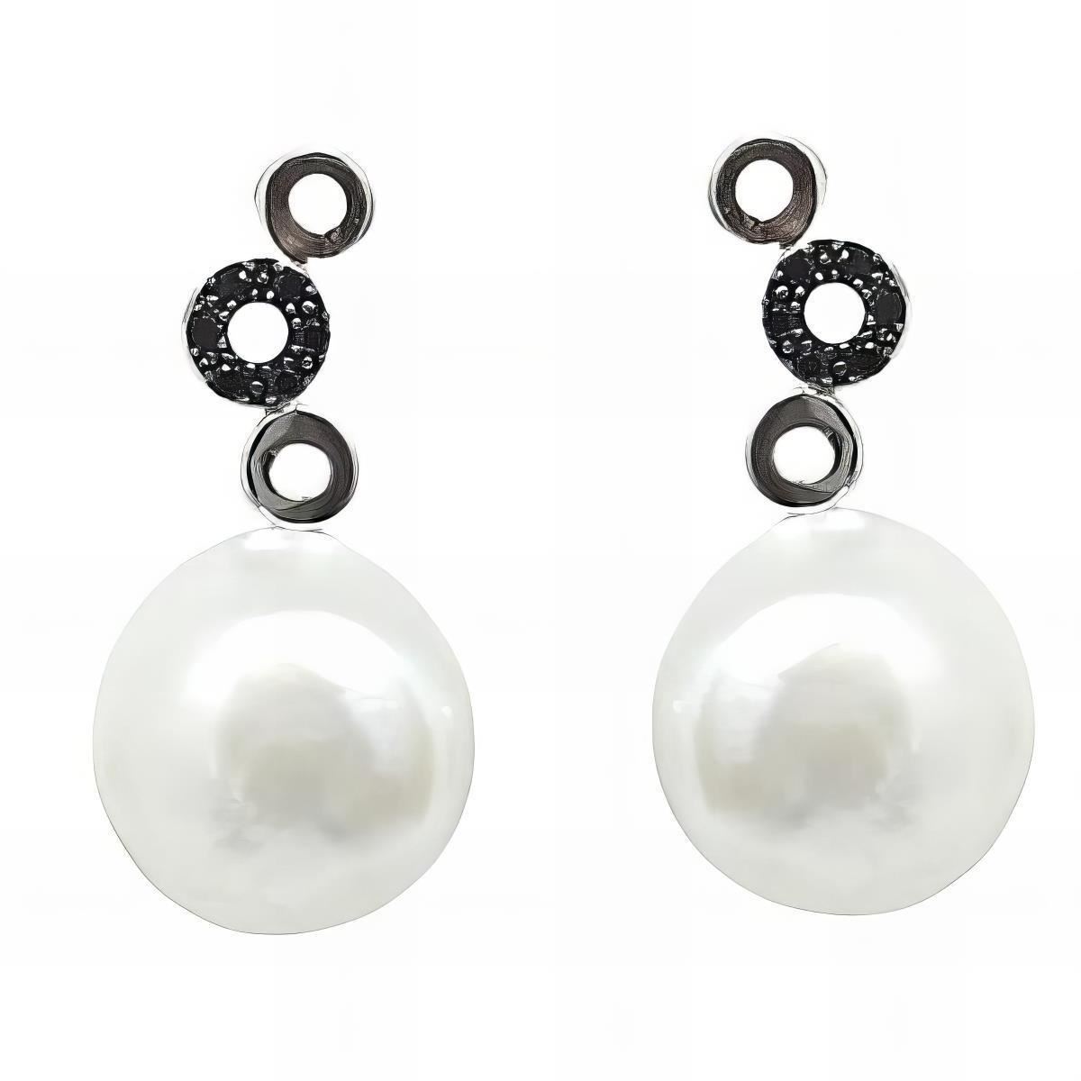 Pendientes Plata de Ley con perla y circonitas blancas y negras, 27mm y cierre presión.