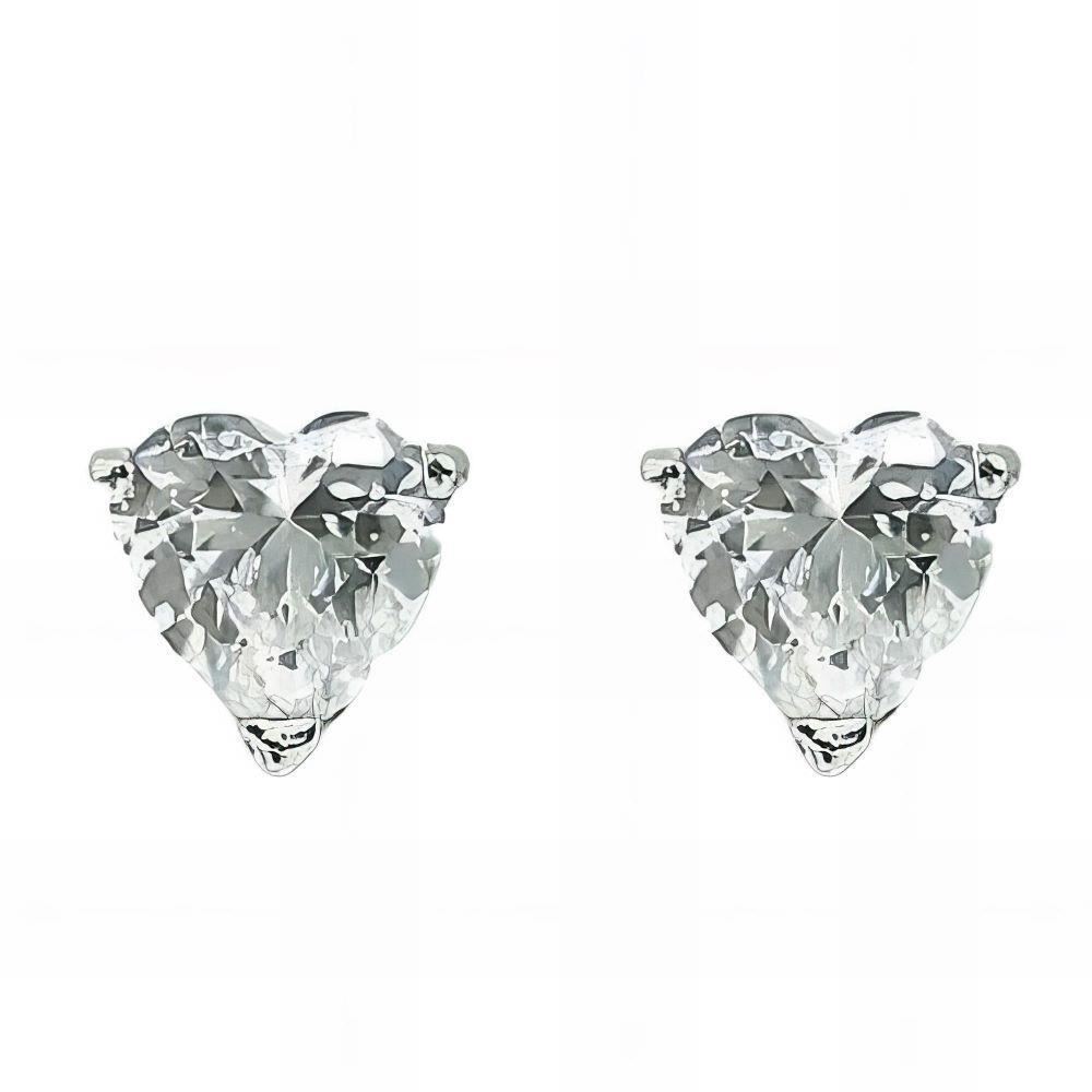 Pendientes Plata de Ley de corazón en circonita, 6mm y cierre de presión.