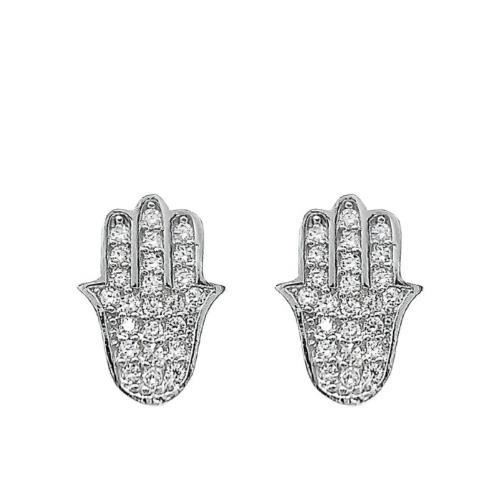 Pendientes Plata de Ley de Mano de Fátima con circonitas, 10mm y cierre de presión.
