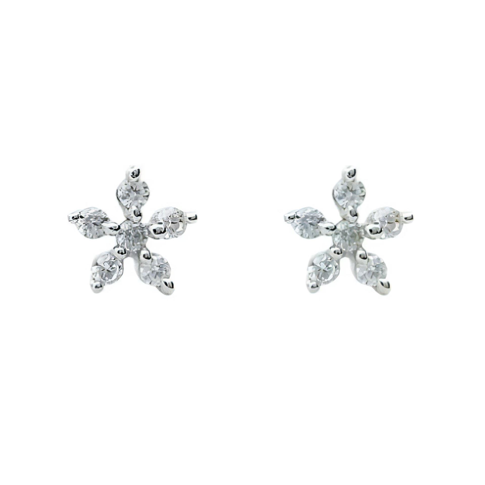 Pendientes Plata de Ley de flor con circonita, 6mm y cierre de presión.