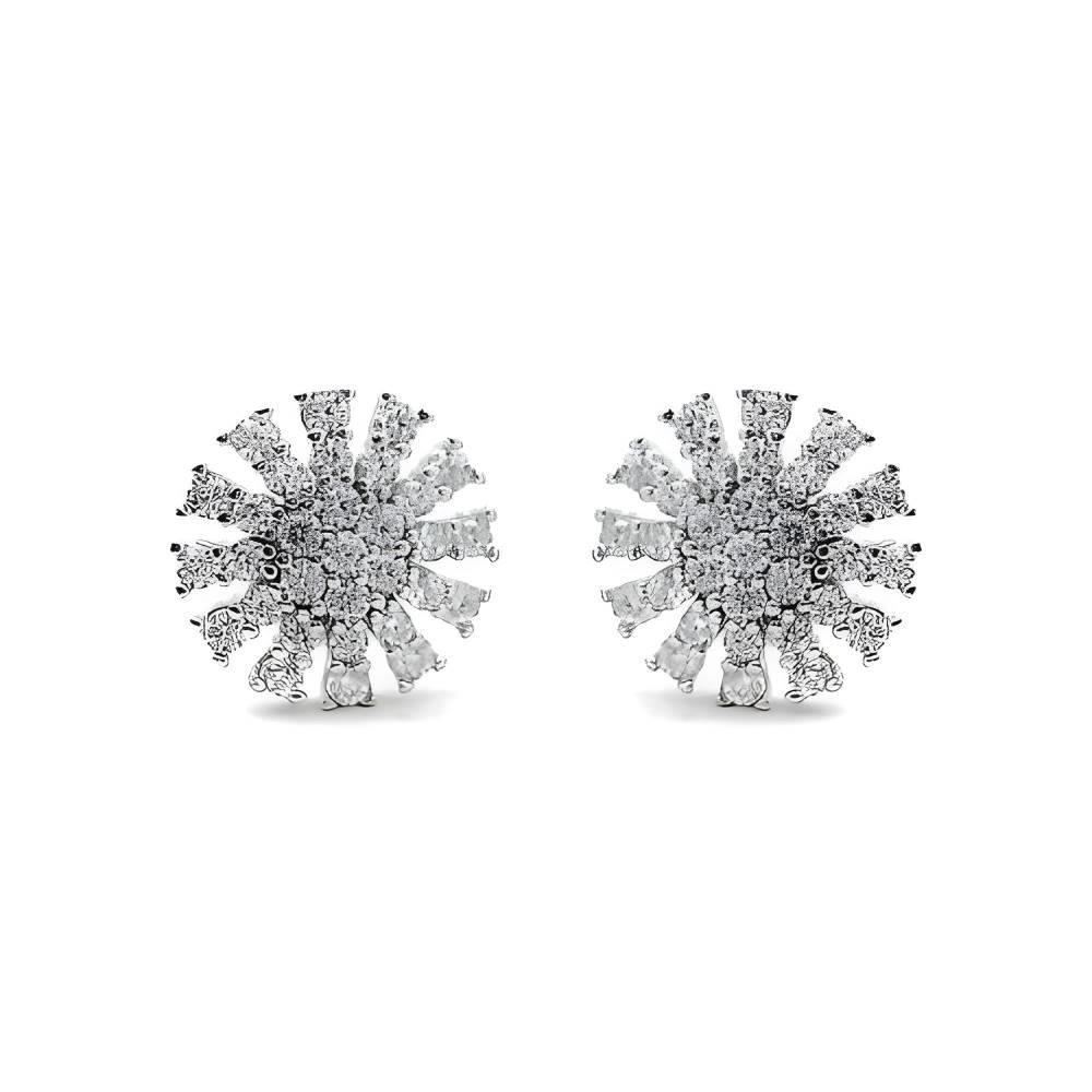 Pendientes Plata de Ley de rosetón con circonitas, 11mm y cierre de presión.