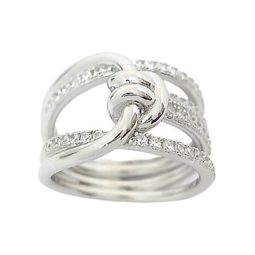 Sortija Plata de Ley de nudo con circonitas, 13mm en disminución.