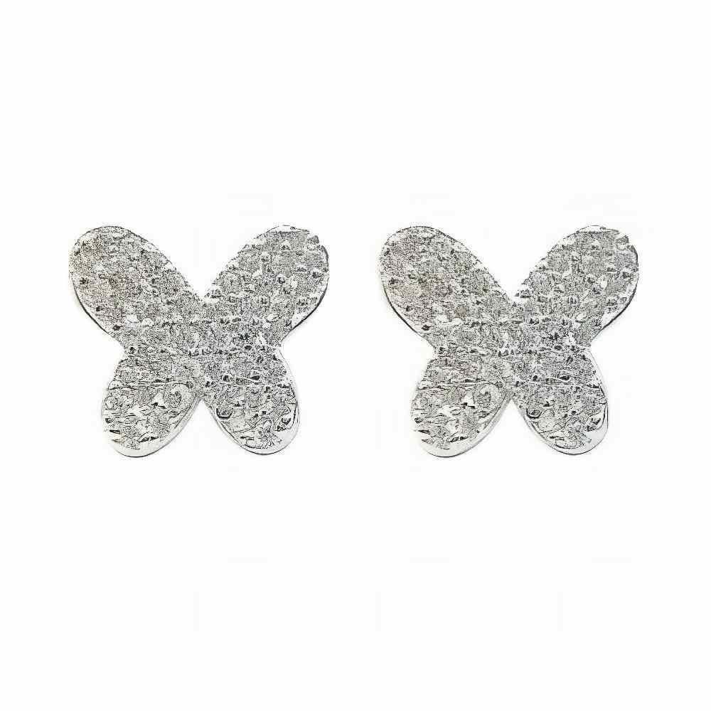 Pendientes Plata de Ley de mariposa con circonitas, 9mm y cierre de presión.