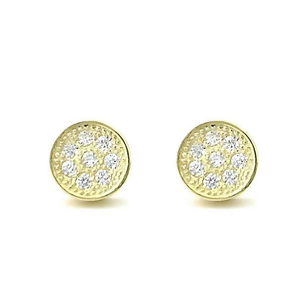 Pendientes Plata de Ley dorada con circonitas, 6mm y cierre de presión.