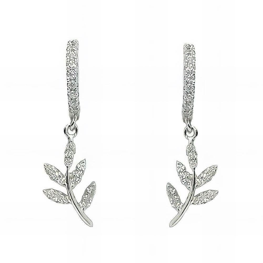 Criollas Plata de Ley rodiadade hoja con circonitas, 15mm y cierre de catalán.