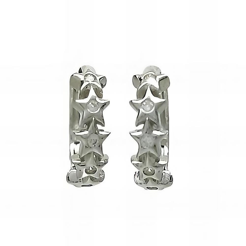 Criollas Plata de Ley con estrellas y circonitas, 4mm de ancho y diámetro de 15mm.