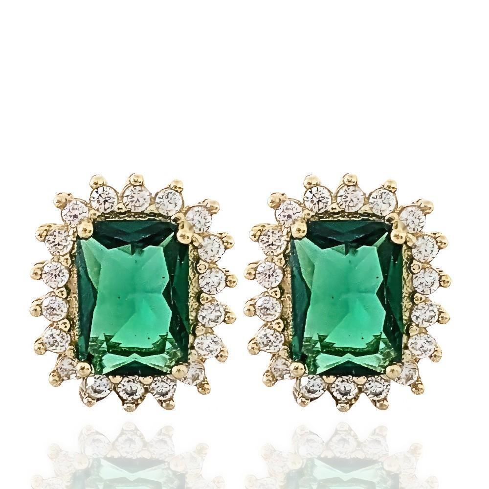 Pendientes Oro Amarillo de 18 quilates con piedra Esmeralda y circonitas, medida de 11mm.