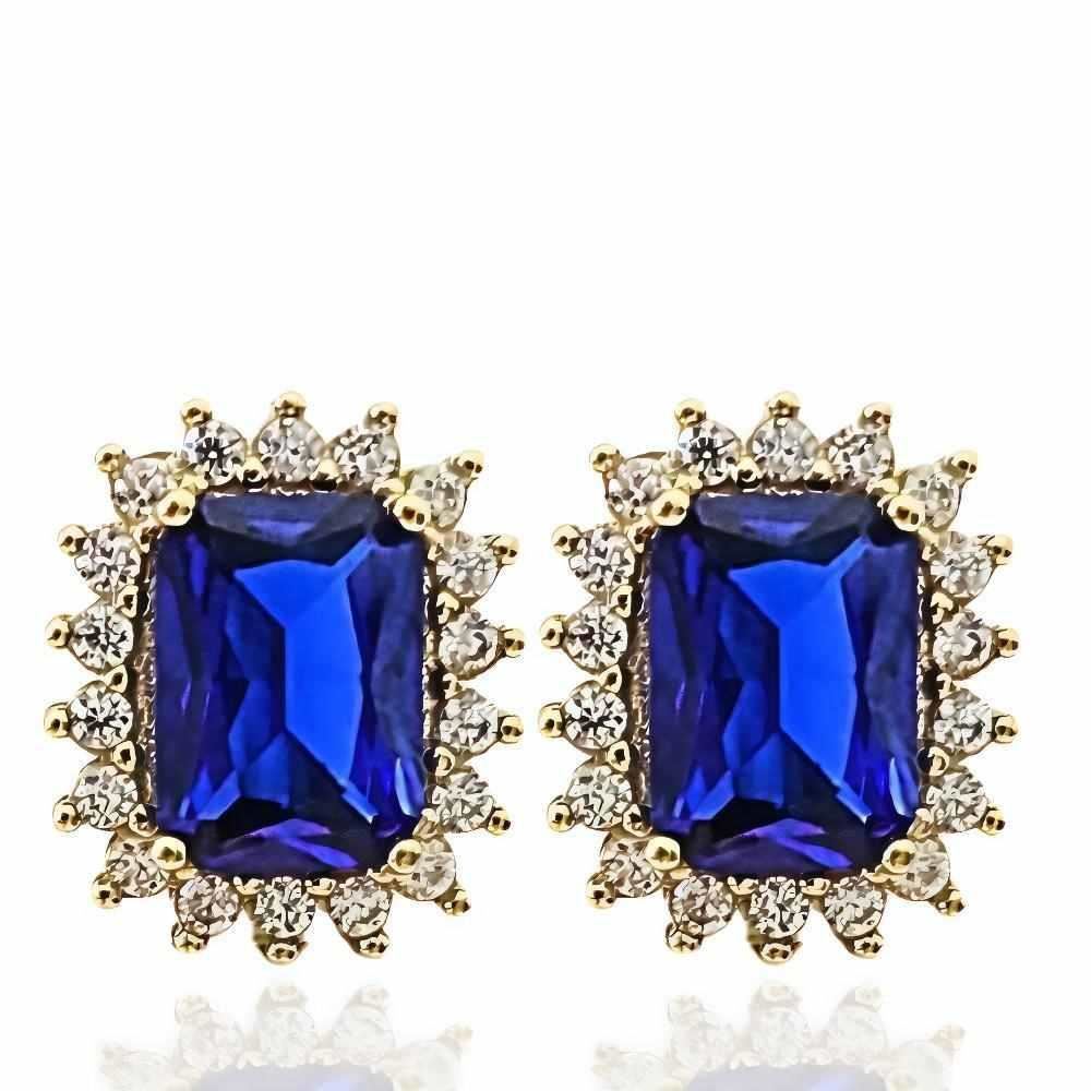 Pendientes Oro Amarillo de 18 quilates con piedra Zafiro y circonitas, 11mm y cierre de presión.