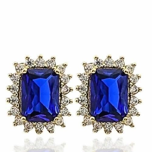 Pendientes Oro Amarillo de 18 quilates con piedra Zafiro y circonitas, 11mm y cierre de presión.