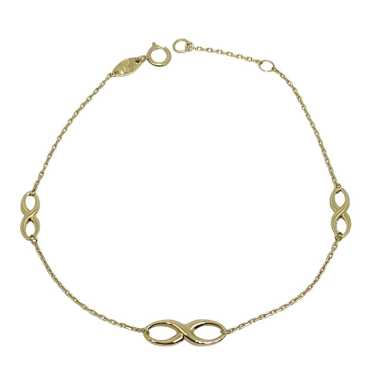 Pulsera Oro Amarillo de 18 quilates con Infinitos de 5x15mm y 3.5x10mm, largo de 19cm con anilla a 2cm para ajustar a la medida deseada.
