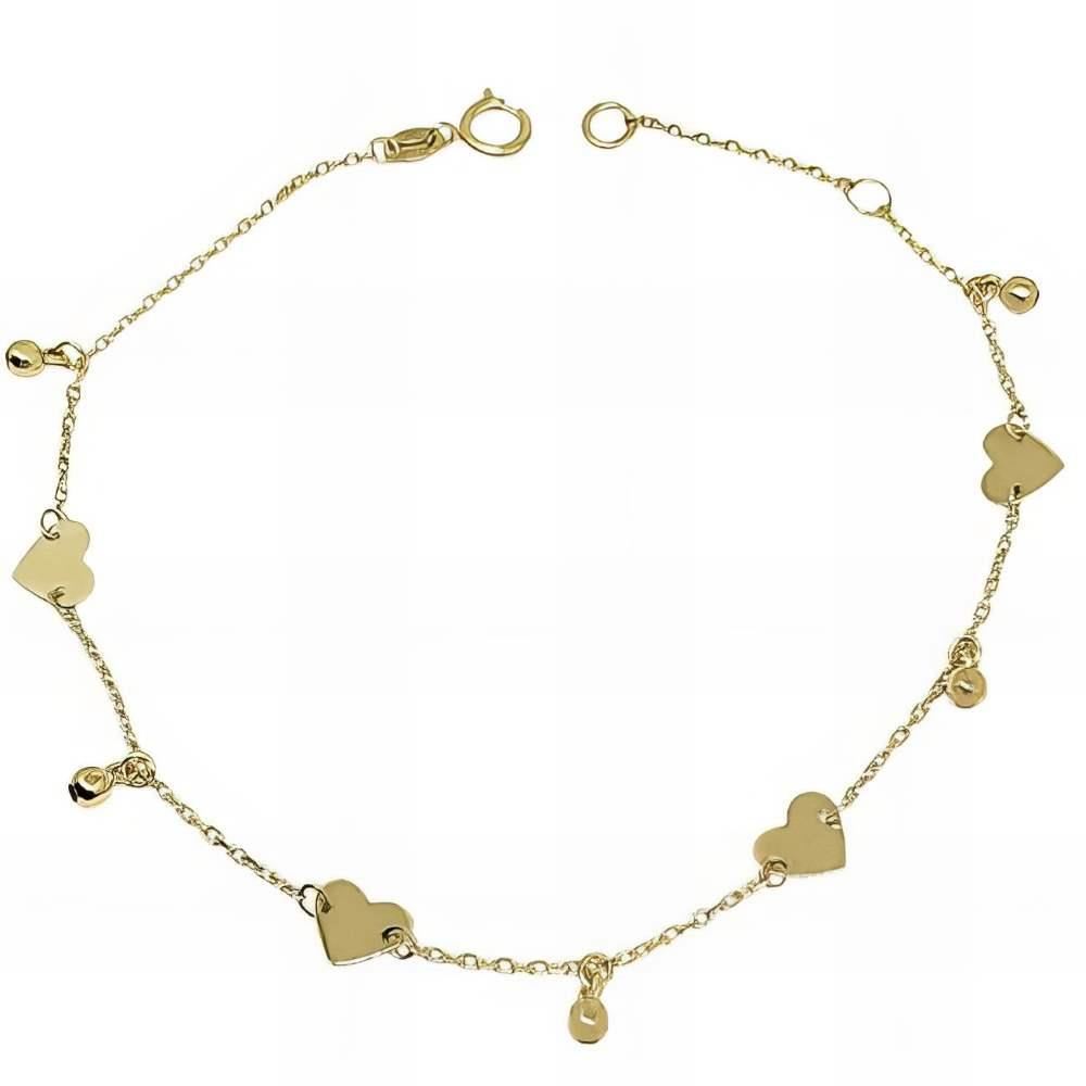 Pulsera Oro Amarillo de 18 quilates con corazones de 5mm y bolas, largo de 19cm con anilla a 2cm para ajustar a la medida deseada.