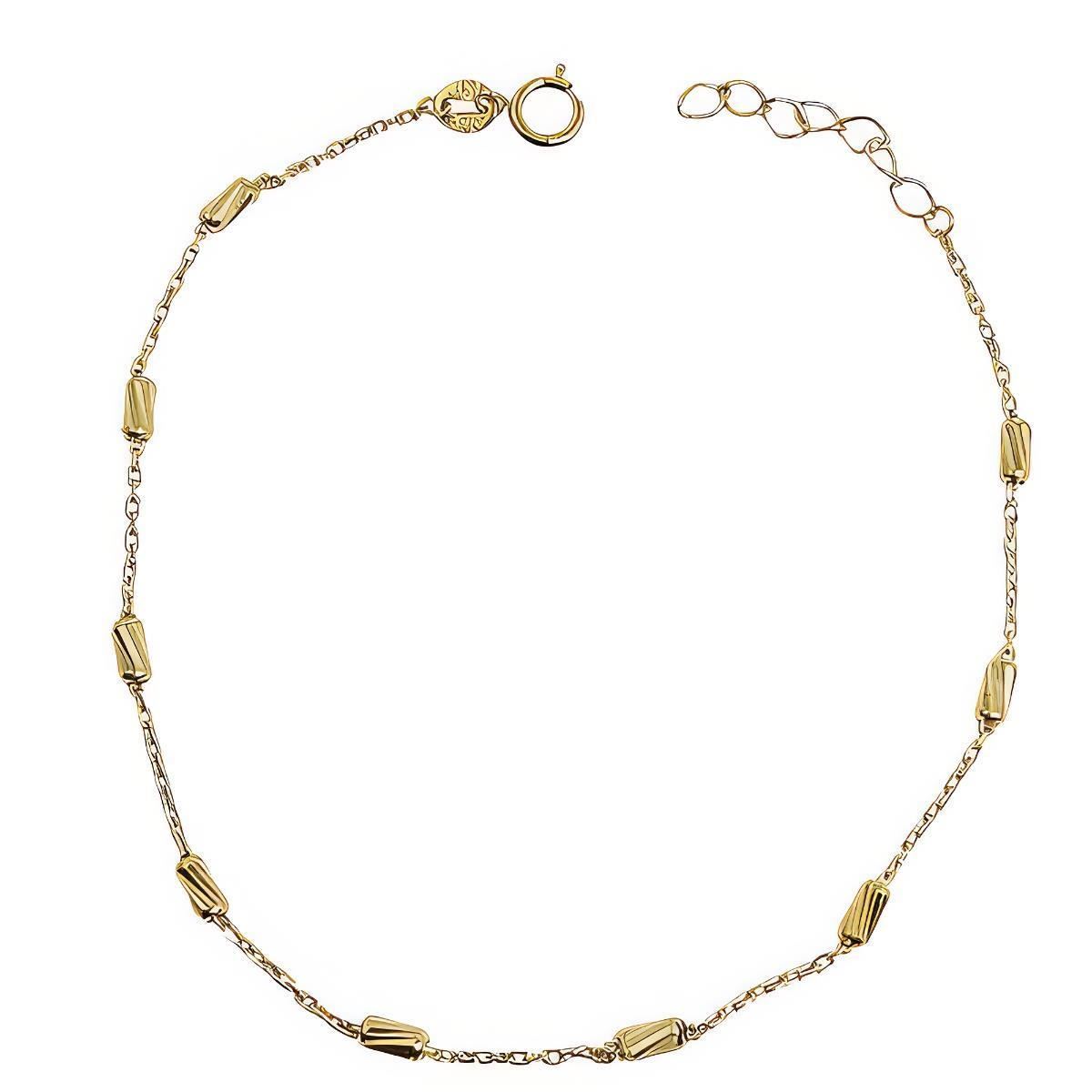 Pulsera Oro Amarillo de 18 quilates con motivos lapidados, 19cm más alargador para ajustar a la media deseada.