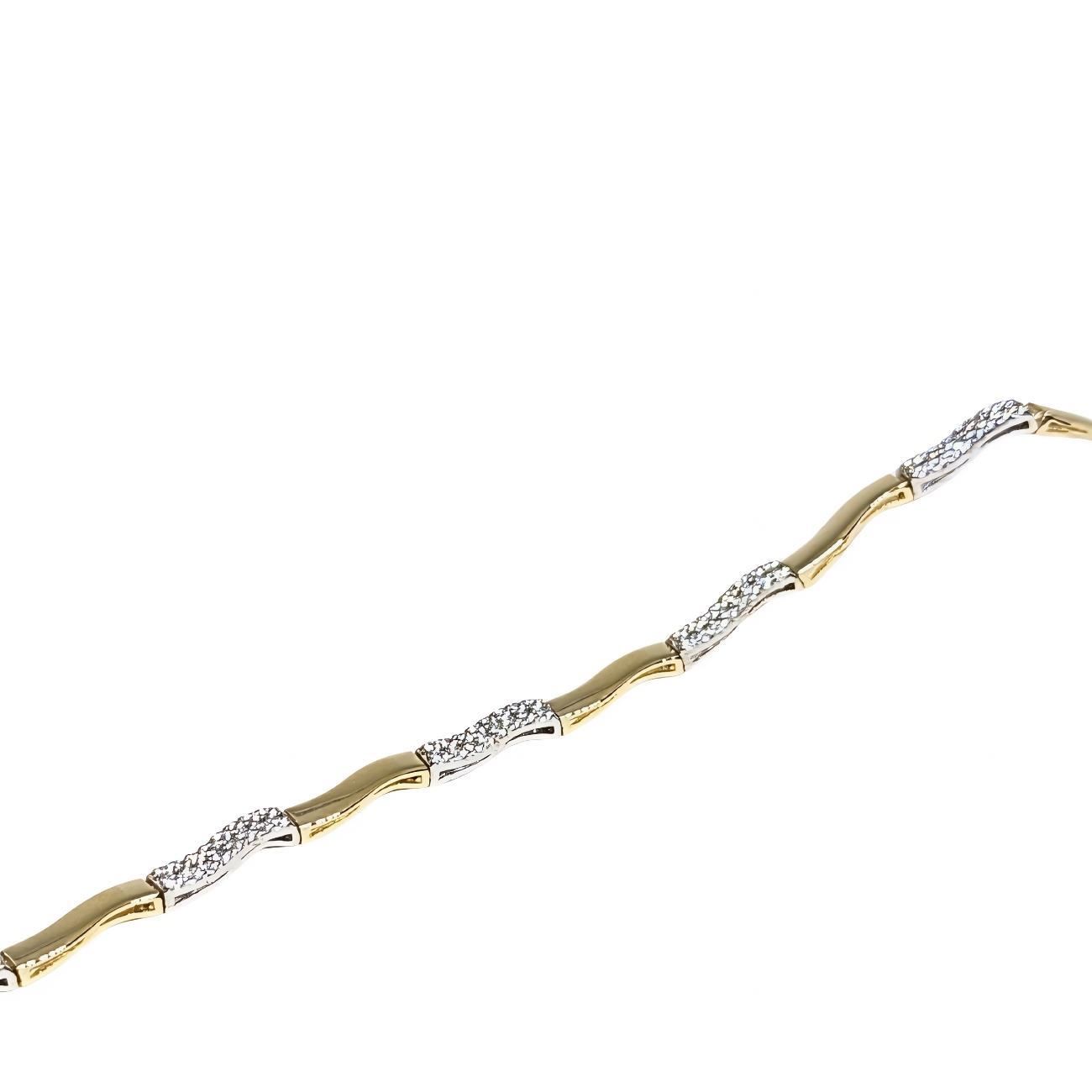 Pulsera Oro Amarillo y Blanco de 18 quilates con circonitas, 2.2mm de ancho y largo de 19cm.