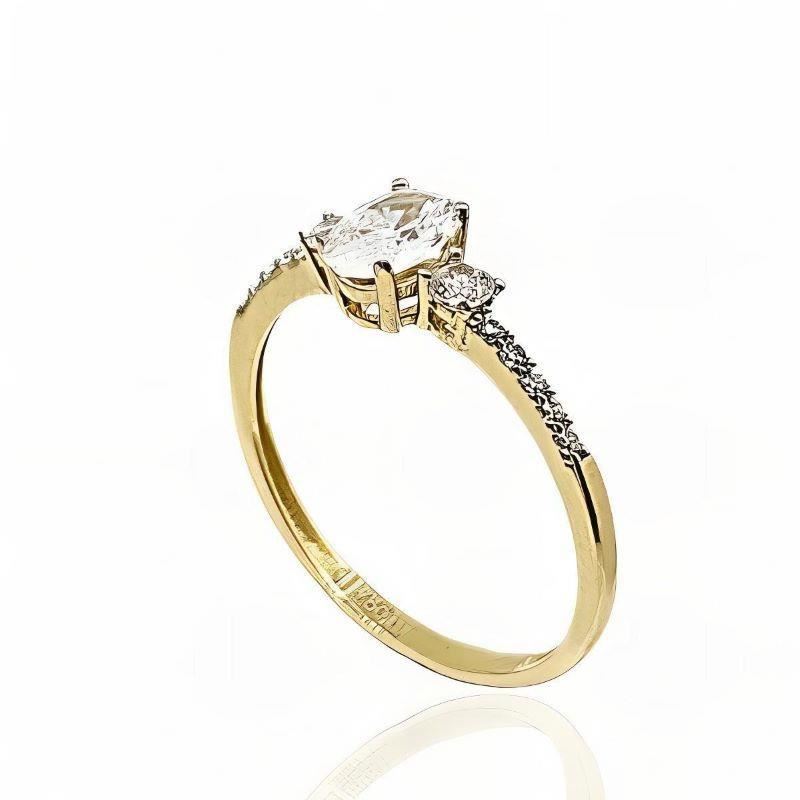 Sortija Oro Amarillo de 18 quilates con circonitas, piedra central de 6mm.
