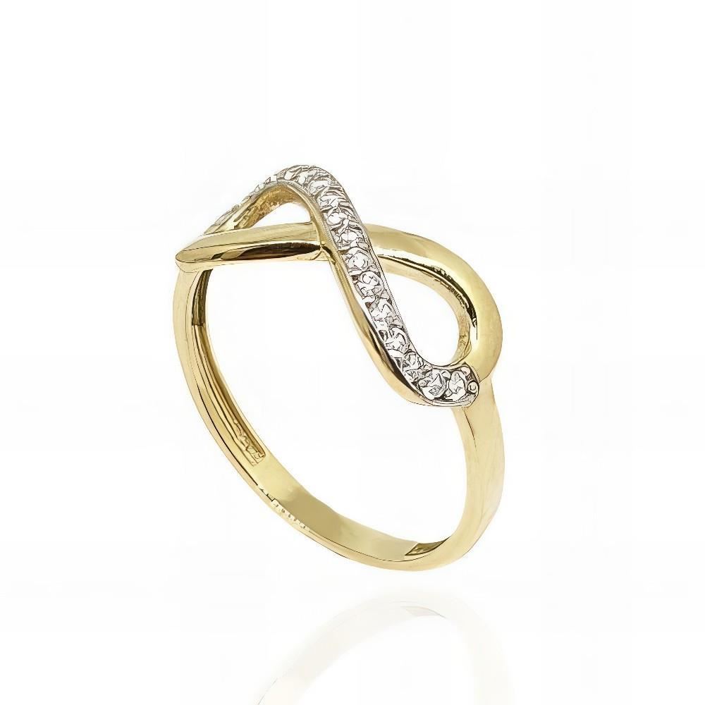 Sortija Oro Amarillo de 18 quilates de infinito con circonitas, 7mm de ancho y 16mm de largo.