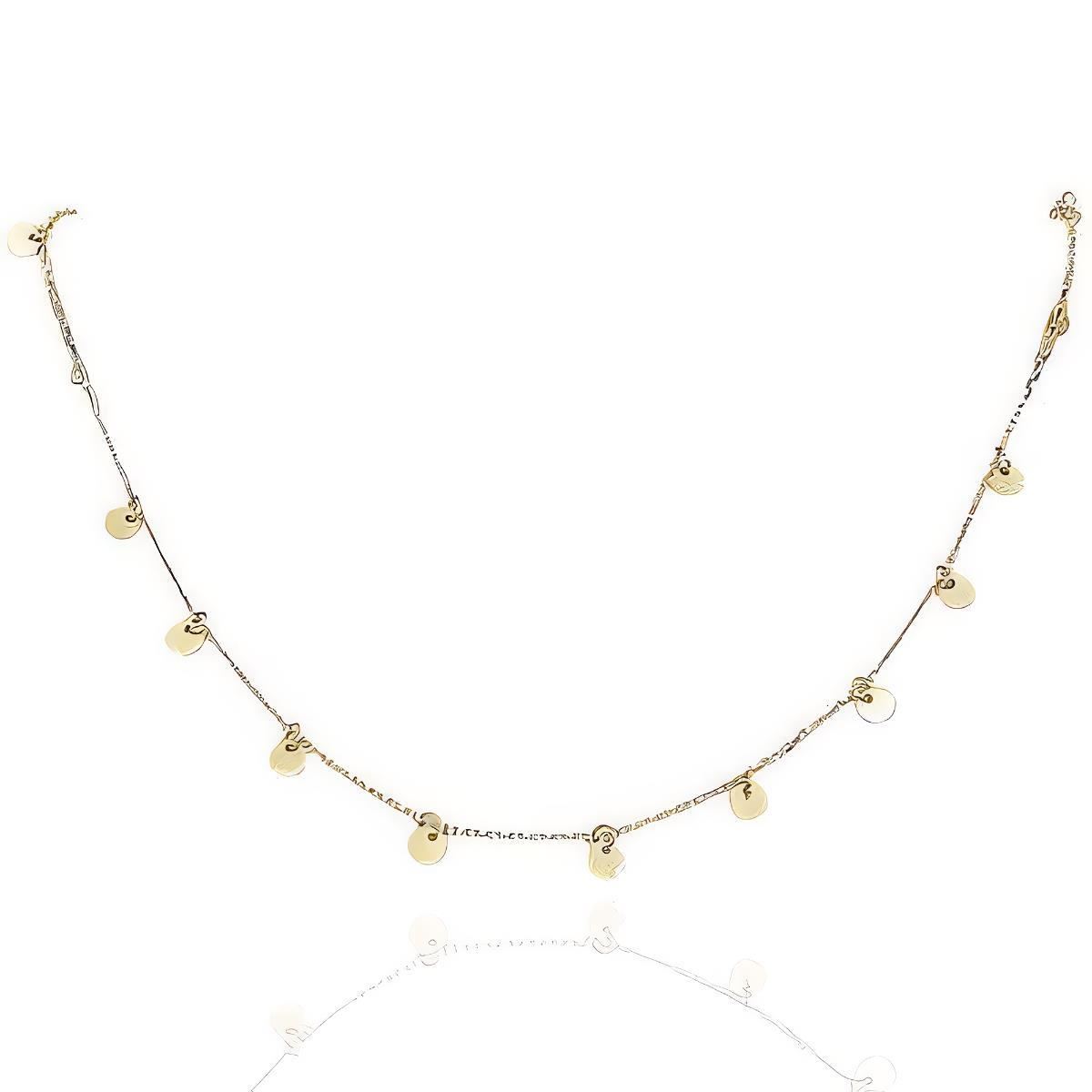Gargantilla de Oro Amarillo de 18 quilates con 12 discos lisos de 2.85mm, largo de 45cm con anilla a 2.5mm para ajustar a la medida deseada.